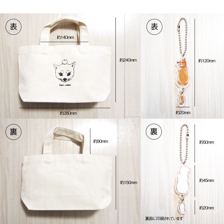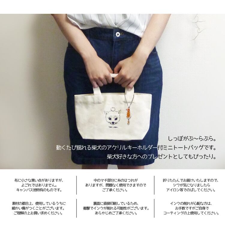 【tomi_moon】柴犬のしっぽが揺れるアクリルキーホルダー付ミニトートバッグ ランチバッグ 犬 キャンバス 帆布 トート ミニトート バッグ 小物入れ ストラップ チャーム アクセサリー イラスト | 柴犬雑貨【tomi_moon】