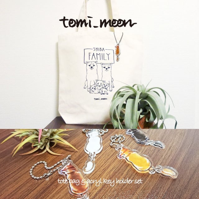 【tomi_moon】柴犬のしっぽが揺れるアクリルキーホルダー付トートバッグ エコバッグ 犬 キャンバス 帆布 トート バッグ 買い物袋 ストラップ チャーム アクセサリー イラスト | 柴犬雑貨【tomi_moon】